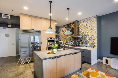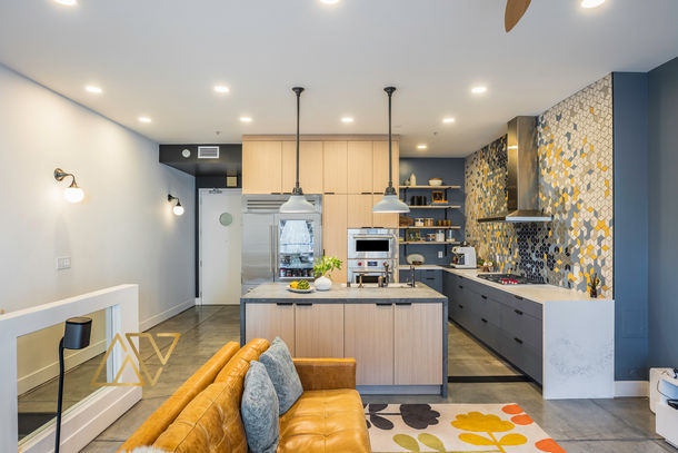 Our team brought our client's vision to life with a one-of-a-kind design. The standout feature of the revamped kitchen is the stunning backsplash, which extends all the way to the ceiling. A reimagined floor plan introduces an open-concept layout, centered around a spacious island, enhanced by recessed and pendant lighting for a truly unique style. In the powder room, a serene forest-themed wallpaper sets the tone, paired with exquisite finishes and custom details. Don't miss our client's testimonial to hear more about their experience!