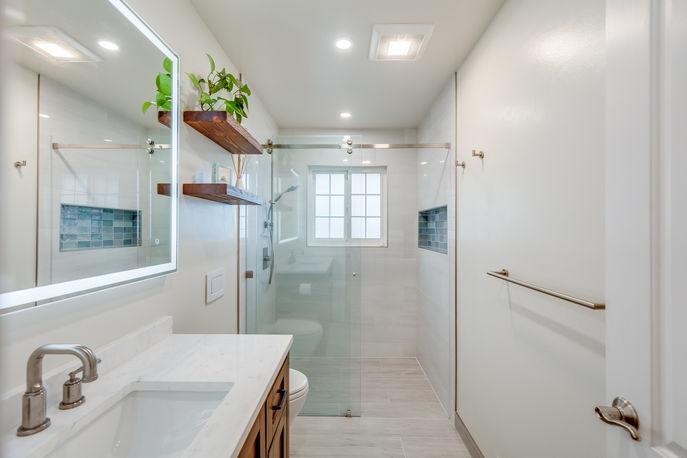 Services provided: Bathroom Remodel, painting, permitting, design, Tile installation, Lighting, shower door installation.